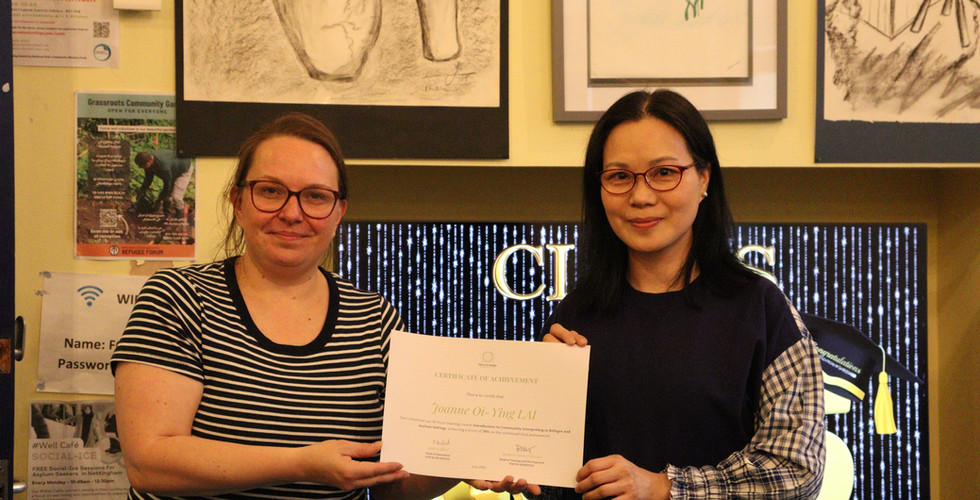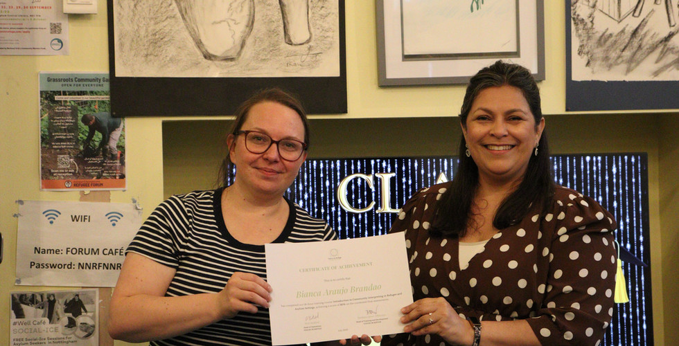9 interpreters completed the online course in May, and 21 interpreters successfully passed the final assessments of the in-person course that finished a couple of weeks before the graduation. We welcomed many of the graduates, their friends and family members to the graduation event on 24th July at Nottingham Refugee Forum’s Café Narjis.