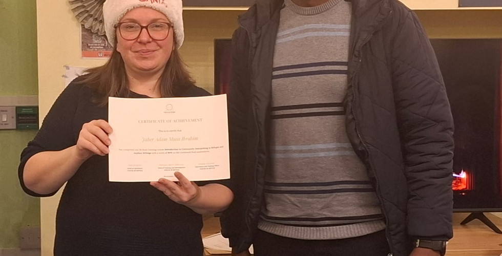 We would like to thank Nottingham Refugee Forum for hosting another celebration, the Café Narjis catering team, led by our very own multitalented interpreter/baker/entrepreneur Halima, for amazing food, and to Nottingham City Council and National Grid Community Matters Fund which provided funding for the courses, making them free and accessible to asylum seekers and refugees.